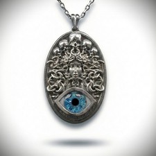 Antique Bronze Medusa Pendant With Eye, Skull Medusa Silver Necklace, Medusa