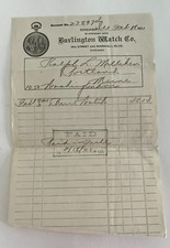 Antique 1892 Burlington Watch Co Chicago Receipt Purchase Of Watch Advertisement