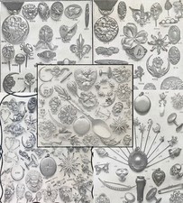 SILVER SMITHS Victorian Jewelry,Seed Pearl Brooch,Masonic Pin+ Antique Print Ads