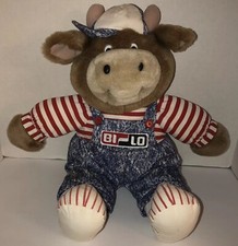 VTG Bi-Lo Stuffed Plush Cow Grocery Store Advertising Toy 20" Sideways Hat Kid