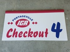 Vintage sign hang IGA grocery Store Checkout 4 Portageville lane advertising
