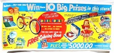 RARE Vtg 1954 Thriftway Super Markets Coloring Contest Advertising Poster 31X70