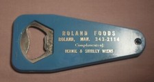 ADVERTISING ROLAND FOODS MB BERNIE & SHIRLEY WIENS BOTTLE OPENER BLUE SP-1205
