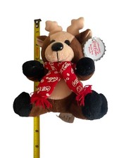 Coca-Cola Christmas Moose 8.5 Inches Vintage Stuffed Plush Toy Gift W Xmas Hat