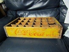 Vintage Coca-Cola 24 Bottle Wooden Crate Coke Soda Yellow Red Logos Advertising