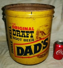 VINTAGE DAD'S ROOT BEER METAL SODA SYRUP CAN BUCKET SIGN MUG ADVERTISING DISPLAY