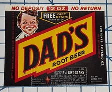 NOS c1970s DAD'S Root BEER Bottle Label Advertising Soda Soft Drink Pop Vintage