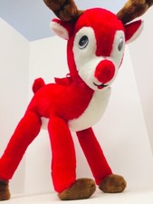 BIG RED Soda Red Nosed Reindeer Vintage Faux Red Fur Collectible Plush 24" Tall