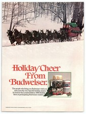 1986 Budweiser Print Ad Holiday Cheer Christmas Clydesdale Horses Snow Dalmatian