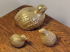 Vintage Mid Century BRASS QUAIL BIRD FAMILY OF 3 Figurines EXCELLENT CONDITION