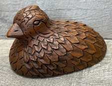 Vintage Mid Century Modern Quail Brown Textured Feathered Wooden Bird Figurine