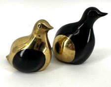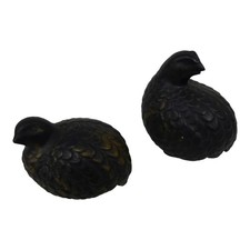Pair brass and black quail figurines vintage Mid Century Modern Partridge
