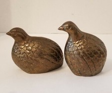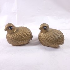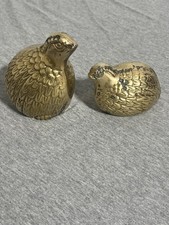 2 Vintage Brass Quails Partridge Bird Figurine Paperweights Mid-Century