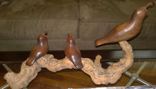 Vintage MCM Mid Century Modern Wood Quail Bird Family Carving Signed