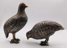 Vintage Brass pewter Pair Quail Partridge Bird Figures Paperweight Mid-Century