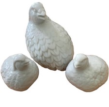 Vintage Ceramic White Quail Partridge Bird Family Figurines 3 Set Mid Century