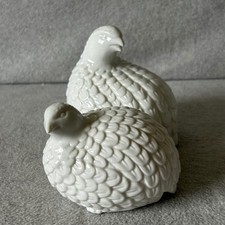 Vintage Pair of Ceramic White Quail Bird Figurines Handmade Signed Mid Century