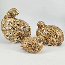 3 Vintage Mid Century Modern Gold Leaf Quail Birds Family Plaster Felt Bottom