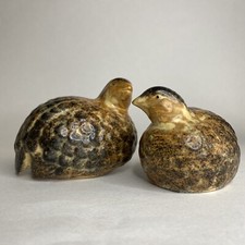 Vintage Quail Partridge Ceramic Pottery Figurines Pair MCM Mid Century