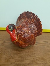 VINTAGE THANKSGIVING PORCELAIN CERAMIC TURKEY FIGURINE DECORATION 6"