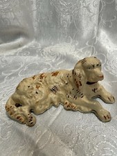 Antique Cast Metal Dog Setter Retriever Reclining 5 1/2" Painted Tan Brown Rare