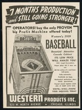 1939 Western's Baseball arcade pinball game machine photo vintage trade print ad