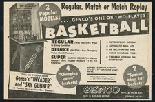1954 Genco Basketball coin-op arcade game machine photo vintage trade print ad