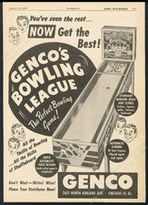 1950 Genco Bowling League coin-op bowler machine photo vintage trade print ad