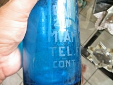 Vintage Czech Blue Glass Advertising Seltzer Bottle Berner Beverages New York