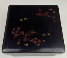 1950s Japanese Black Lacquer Jewelry Box Asian vtg Antique Japan