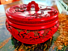 Antique Red/Black Lacquer Handcrafted Wood Box Trinket Box Collectible