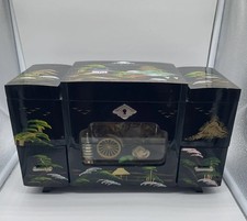 Vintage Japanese Lacquer Jewelry Music Box Working Multi Drawer Scenic