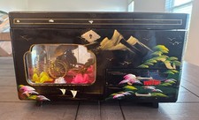 Vintage Japanese Lacquer Jewelry Music Box Multi Drawer Scenic Iridescent WORKS