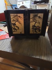 Vintage Japanese Black Lacquer Sone Ware Orgel Music Jewelry Box Crane Design
