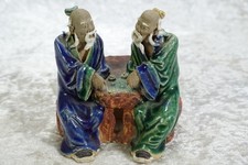 Antique Shiwan Mudmen Figurine Chinese 2 Older Men With Game Board