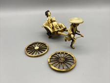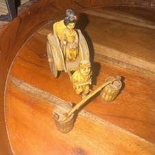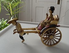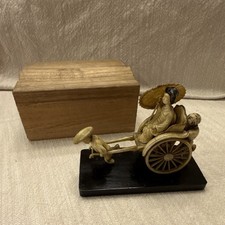 Vintage Japanese Wood Carved Okimono Rickshaw Figurine pulling geisha.