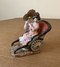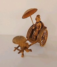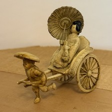 Unique Vtg Handmade Resin/plastic Lady with umbrella in Rickshaw Japan