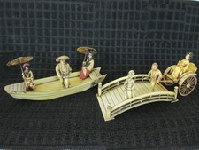 vintage 1950s JAPANESE FIGURINES celluloid resin bridge rickshaw wheels move