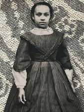 “ANTIQUE BLACK GIRL IN FLOWING DRESS & FANCY COLLAR” Standing Portrait AMERICA
