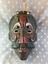 Antique Guatemalan Folk Art Carved & Painted Wood Man w/ Moustache Dance Mask