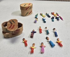 Vintage Folk Art Toy Lot Guatemala Trouble Worry Dolls Ethnic Yarn Wood Boxes