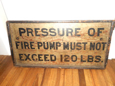 Antique Wood PRESSURE OF FIRE PUMP Advertising Fire Department SIGN