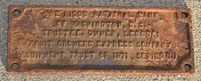 Vintage Cast Iron Riggs National Bank Train RR FRUIT GROWERS ADVERTISING SIGN