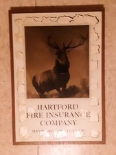 Hartford Insurance Advertising Sign Plaque Hunting Stag Logo 15"x12" Vintage