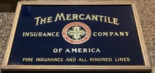 Antique Mercantile Fire Insurance of America Reverse Painted Advertising Sign