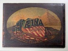 Antique AETNA Insurance Painted Advertising Sign Wood Vintage HTF Americana
