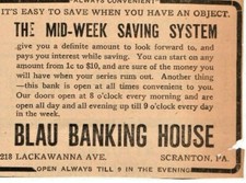 ANTIQUE - BLAU BANKING HOUSE - THE SCRANTON TRIBUNE - REPUBLICAN 1913 AD