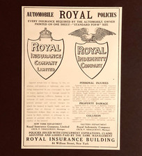 1911 Royal Insurance Advertisement Automobile Policy New York Antique Print AD