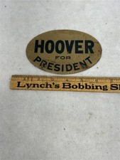 antique political sign Hoover president tan/black oval 3.75 x 5.5 1928 original