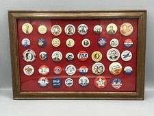 38 Vintage/Antique Political Campaign Pin Back Buttons Reproduction Framed E8, 1